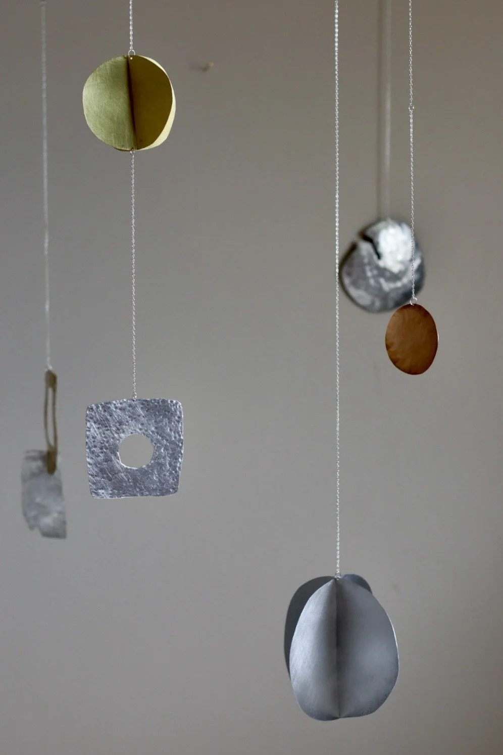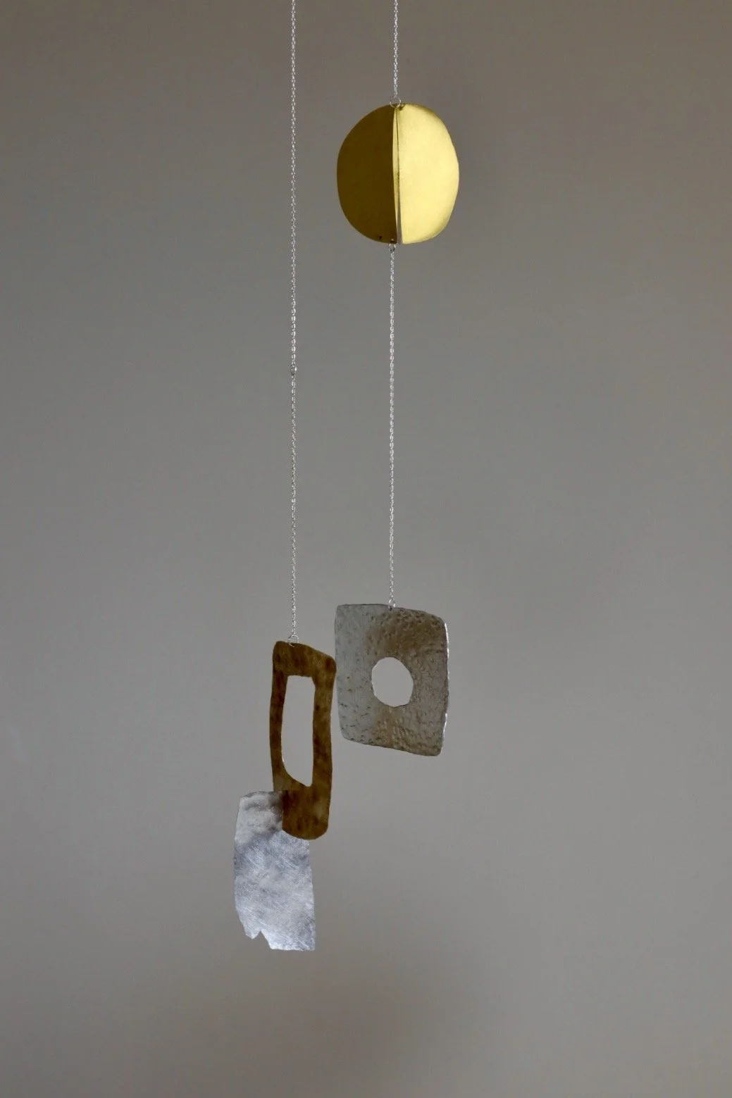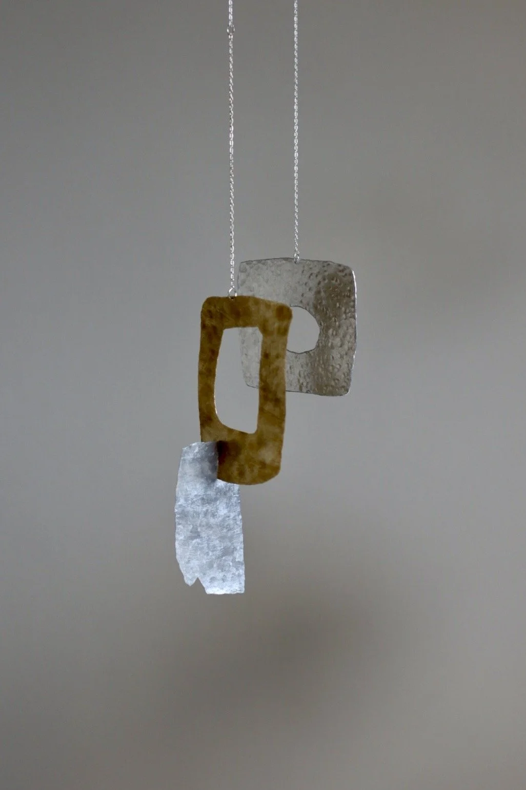 Made from mixed metal including aluminium, silver plated chain, brass and bronze